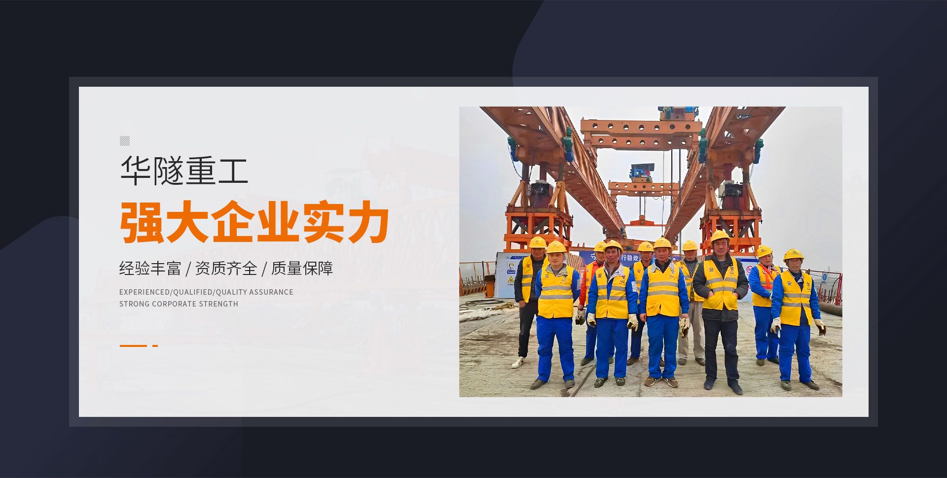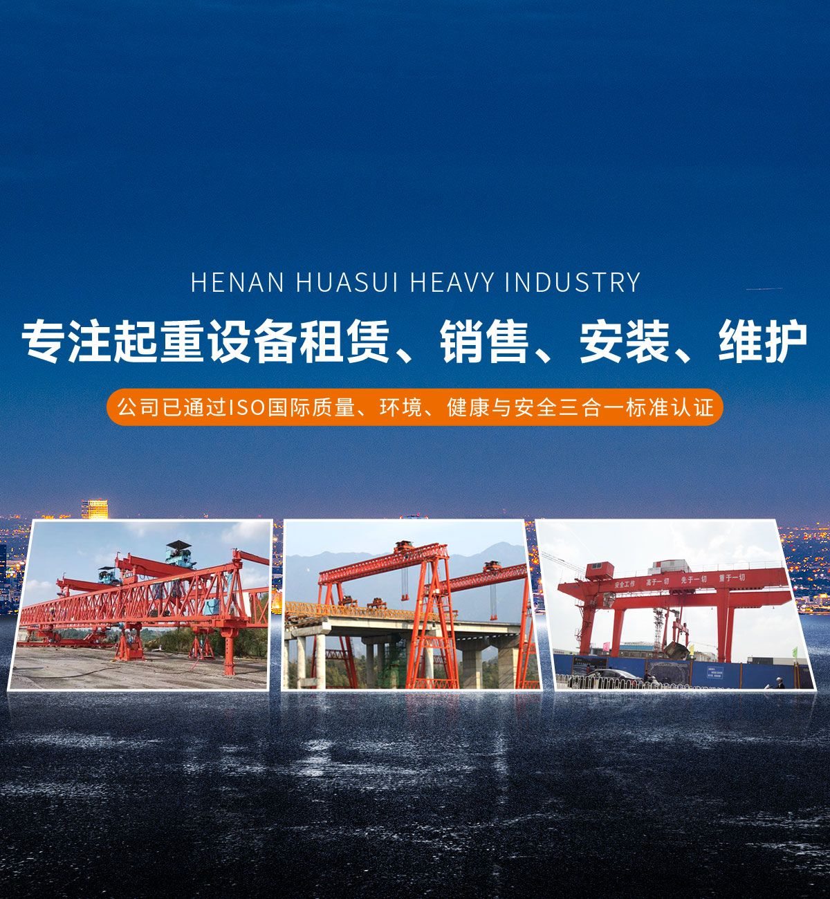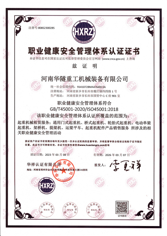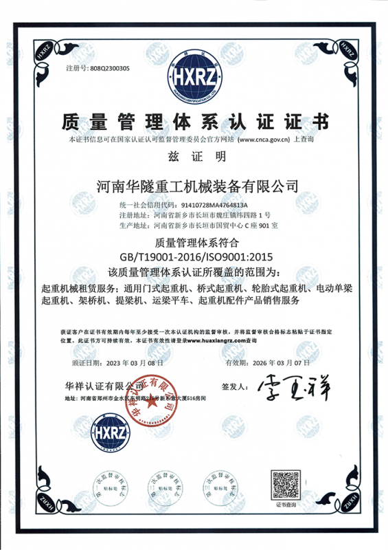 河南華隧重工機(jī)械裝備有限公司主要從事通用門(mén)式起重機(jī)、橋式起重機(jī)、電動(dòng)單梁起重機(jī),輪胎式起重機(jī)、架橋機(jī)、提梁機(jī)、遠(yuǎn)梁平車(chē)、鋼絲繩電動(dòng)萌蘆、卷?yè)P(yáng)機(jī)、起重配件制造、銷(xiāo)售:起重機(jī)械租賃、安裝和維修,起重設(shè)備園收,機(jī)械設(shè)備維修,鋼結(jié)構(gòu)工程承包,橋梁工程及技術(shù)咨淘服務(wù),銷(xiāo)售五金制品、機(jī)電設(shè)備:建設(shè)工程監(jiān)理,建設(shè)工程設(shè)計(jì),各類(lèi)工程建設(shè)活動(dòng),建筑勞務(wù)分包,建筑物折除作業(yè),施工作業(yè),工程管理服務(wù),土石方工程施工,裝如發(fā)運(yùn)。  公司已通過(guò)IS0國(guó)際質(zhì)量、環(huán)境、健康與安全三合一標(biāo)準(zhǔn)認(rèn)證,特種設(shè)備制造許可證和特種設(shè)備安裝改造維修許可證。擁有完熟的質(zhì)量管理體系。嚴(yán)格的管理制度,強(qiáng)大的生產(chǎn)能力和先進(jìn)的檢測(cè)手段,在保證產(chǎn)品質(zhì)量的同時(shí),也具備了極強(qiáng)的市場(chǎng)競(jìng)爭(zhēng)力。  公司堅(jiān)持科技創(chuàng)新為理念,產(chǎn)品質(zhì)量為核心,注重信譽(yù),建立了減信可靠、快捷、思速。便利周到的售后服務(wù)網(wǎng)絡(luò)?! ∥覀儞碛械募夹g(shù)專(zhuān)家和技術(shù)服務(wù)隊(duì)伍為客戶提供充善的售前技術(shù)支持和全天候的售后服務(wù)體系,讓您無(wú)后顧之憂,享受一站式的超值服務(wù)?!  叭A隧重工,伴您成功“是華隧重工永遠(yuǎn)的宗指,真被的希望與各界朋友攜手并進(jìn)。共創(chuàng)輝準(zhǔn)!